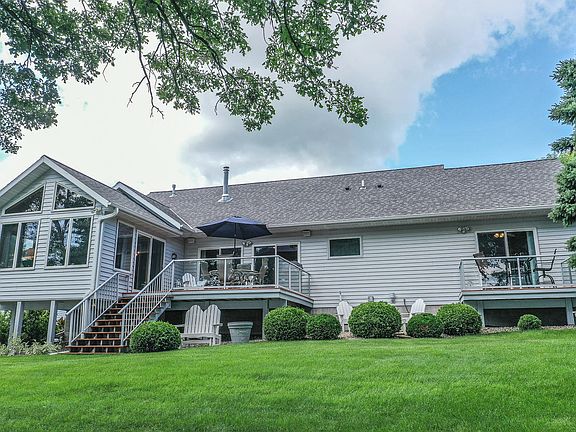 Come visit the shores of Mill Lake. Just minutes from Alex, this home is sure to please, it is Q-tip clean, and tastefully decorated to accentuate the timeless beauty of this home. It has main level living, vaulted ceilings, solid surface countertops and panoramic views of Mill Lake. Watch the sunrise from your master bedroom, enjoy a bath in your jetted tub or have your morning coffee on your private deck. This home beams of quality and care and is built to enjoy the lake all year round. From the four season porch and deck to the basement which offers a wet bar for entertaining and a fireplace to warm up to when the weather is not your friend. This 5 bedroom home has everything from hard bottom shoreline to a 3 stall detached garage. Come make your next home on the shores of Mill Lake!