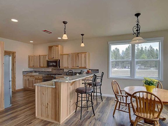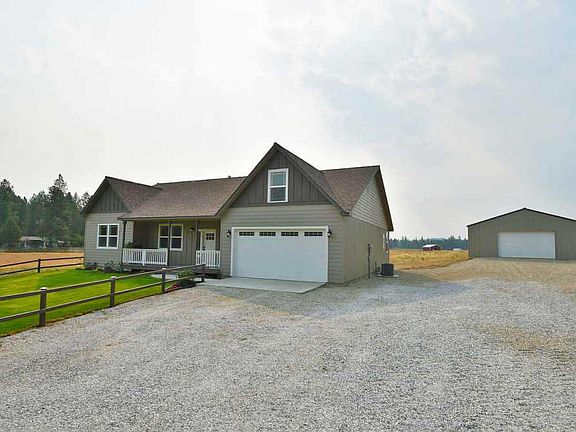 Incredible 3 bdrm rancher features a spacious open floor plan that melds into a gourmet kitchen adorned w/Brazilian granite, high end stainless appliances, & walk-in pantry. This beautiful home has front & back covered decks. Large master. suite embraces a distinct sitting room, walk-in closet, & master bath w/granite counters & walk-in shower. Home sits on 5 acres w/30X42 shop, 15gpm well & abounds wild-flowers. This new home awaits your personal touches & offers a quick, country road commute to Spokane.
