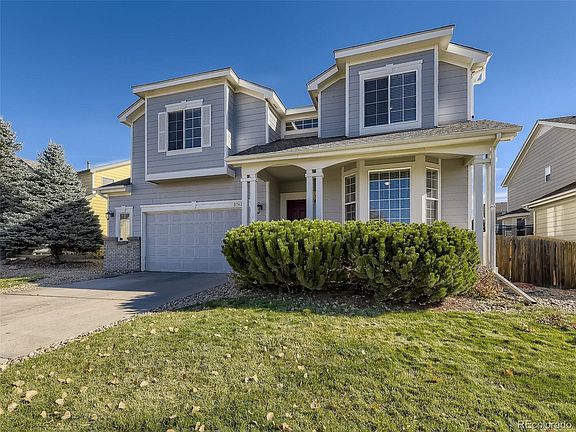 Beautiful 4 Bedroom, 3 Bathroom two story home in Metzler Ranch offering a rare main floor primary suite with sitting area. Main floor offers a study that could also be a formal dining room, stunning hickory wood flooring, open floorplan with vaulted ceilings, powder room and laundry room. The upper level offers a generous loft, 3 additional bedrooms and a full bathroom. Relax in your maintenance free back yard with artificial turf...zero scape and backing to large greenbelt. 2 1/2 car garage includes 240 volt service for electric car charging and additional parking on the side of the garage. New Roof, Blinds, Garbage Disposal 2022, also Newer Air Conditioner, Furnace, Water Heater and updated paint and carpet. Huge unfinished basement to finish to your liking. Just minutes from everything Castle Rock has to offer, easy access to I25. And don't forget the Beautiful mountain views!