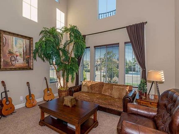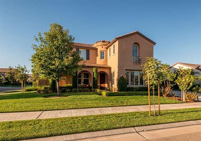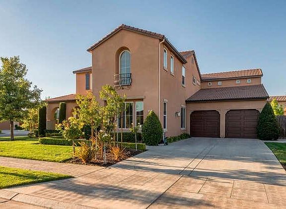 Located in the highly-sought after community of Harlan Ranch, this Wilson Rivage home is an owner's dream. This 3,900 sq. ft. Escalon floor plan sits on an impressive 10,627 sq. ft. corner lot surrounded by lush landscape & includes both a front porch & large backyard with ChoiceTek deck where owners can spend the upcoming cool fall evenings. Just as impressive as the outside, the interior of this home is full of upgrades & beauty. Over $90k has been spent on upgrades including 3-pc crown molding, wrought-iron stair railings, granite countertops & designer Kitchen Craft Cabinets. The home includes 3 gas fireplaces throughout to help keep away that winter chill. The home has a formal living & dining room, kitchen with breakfast nook, family room & a spacious bonus room that is currently being used as a media room, but use your imagination & turn it into the room of your dreams. Also, your guests will feel like they're on a true vacation in their own tucked away guestroom with bathroom. Upstairs the spacious master suite is a true owners paradise complete with balcony to watch the sunrise & enjoy an early morning cup of coffee. This home is equipped with an OWNED, Sunpower 327AC Solar Modules/ 30-panel solar system, a $33k investment installed in 2018. This will help keep your house cool on these hot summer days all while saving you money. The four car, tandem garage is equipped with a car charger & enough room for your cars & toys.