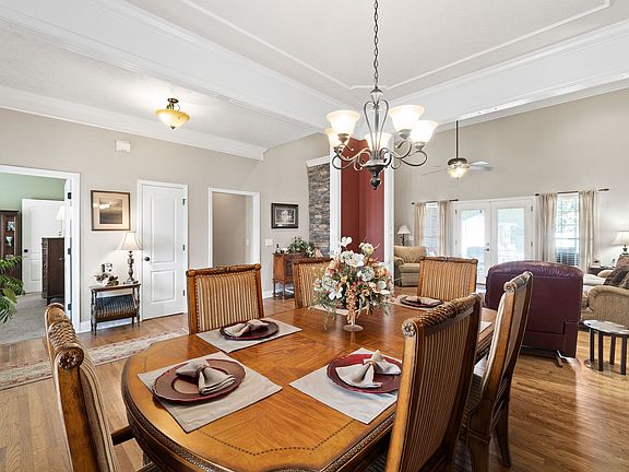 ALL brick home on 2.8 acres.Fantastic kitchen w/upgraded cabinetry, breakfast bar&island w/ all the bells & whistles, sand&finish hardwood flooring & granite. Keeping Room with stone fireplace/railroad tie mantle by the breakfast nook. 4 beds on main featuring 2 En-suites. LR w/stone fireplace & hardwood. DR w/ wainscotting, crown. 3 Car Garage. Storage bldg, Brick covered back/front porch. Saltwater in-ground pool 4'-8', diving board, w/pool house &1/2 bath Bonus w/half bath 18x10 attic storage