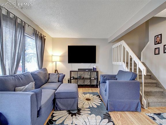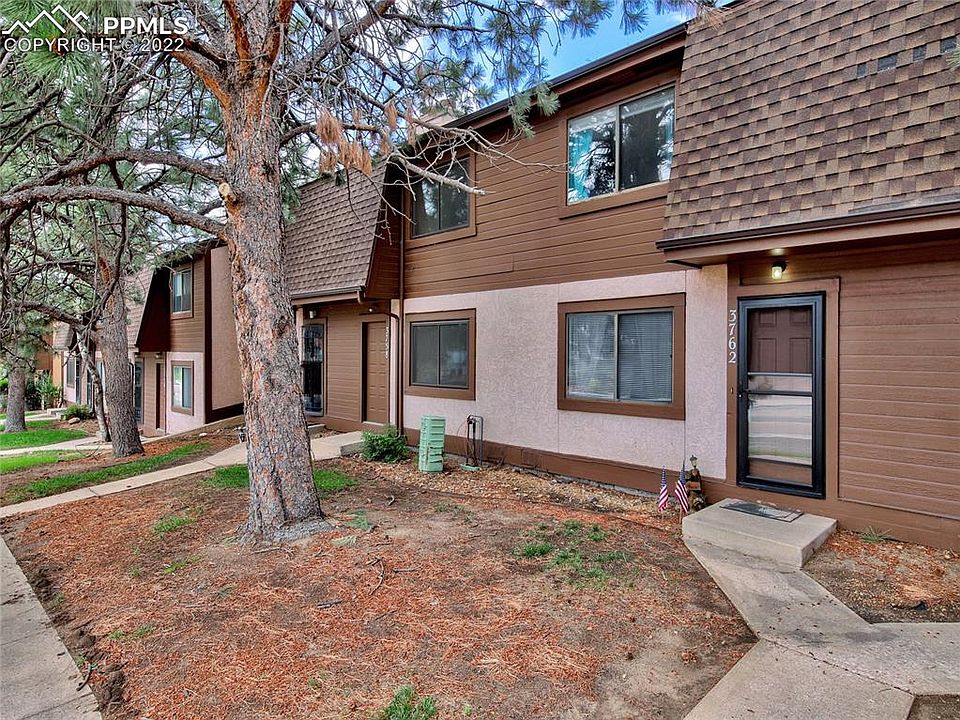 Great centrally located townhouse! Close to the Powers corridor and walking distance to schools and parks! Great condition! Cozy fireplace in the living room with laminate flooring on main level. Large eat-in kitchen walks out to back deck! Two large bedrooms upstairs! Newer water heater! Unit has AC! Covered parking! Storage unit attached to back deck.