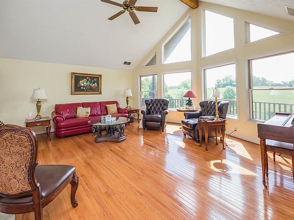 Why go anywhere else when you can enjoy all the amenities of this spacious cedar sided home with a full finished basement on nearly 60 gently rolling acres in the Bluegrass? This property provides it all and offers something for everyone! Inside, you will discover more than enough room to live and entertain. With a good balance of pasture and woods, opportunities are there for horses or cattle...or deer and turkey hunting. Enjoy fishing in either of the stocked ponds (one offers a dock, while the other boasts a small island). And perhaps the biggest surprise is the luxurious heated saltwater pool in the backyard oasis. Trust us...you will never want to take a vacation again!