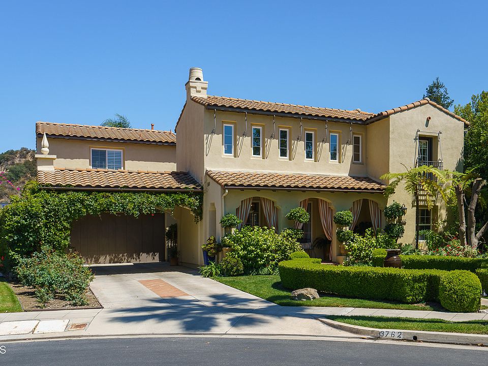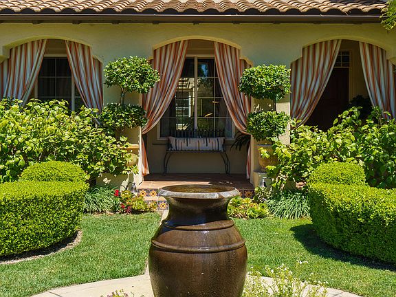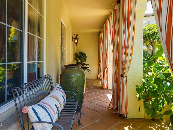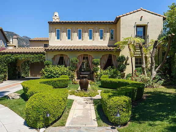 Welcome to this stunningly remodeled 3,881 square foot Spanish Revival on one of the largest lots in this sought-after community. You enter the magnificent home via three central arches that step up to the wide covered portico done with hand crafted tiles. The five bedroom, five bath home has been elegantly redone and includes luxurious, high-end finishes throughout. Some of the incredible highlights are soaring ceilings, rich woodwork with hewn beams, a beautiful chef's kitchen with an expansive center, marble island, custom cabinetry, and stainless steel appliances all adjoining the light filled breakfast area with a separate family room. There is also a stately dining room that opens out to two gracious outdoor seating areas, making it the perfect place for entertaining or quiet dinners under the stars. In addition, this level has a handsome office, an en suite bedroom as well as a laundry room and guest bath. The upstairs offers four bedrooms with beautiful views, including a retreat-like master suite with an inviting fireplace and a recently remodeled, over-the-top bathroom that looks like it is right out of a magazine. The residence, tucked at the end of a quiet cul-de-sac, makes use of it's 18,204 square foot lot by being sited with three picture-perfect patios that include trickling water features, an outdoor, stacked stone bar with kitchen, Saltillo tile flooring, hand painted tromp l'oeil artwork and sweeping views of the verdant canyon as well as the city lights twinkling in the distance below. Don't miss this opportunity to experience the best of the California lifestyle behind the serene gates of La Vina.