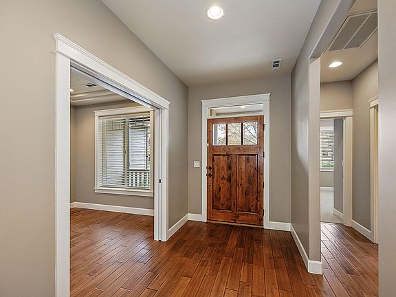 Craftsman style one level home located in Summerfield Subdivision. Three bedrooms plus an office with double pocket doors off of the entry. Large, vaulted great room with gas fireplace and hardwood floors. Open floor plan with white painted kitchen cabinets and stained cabinet island. Granite counters with tile backsplash and pantry. Split floor plan. Spacious master suite with walk-in closet, double vanity, solid surface counters and tile shower. Covered front and back patios. Level, private backyard with large grass area. Located near the Summerfield Neighborhood Park.