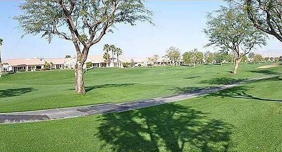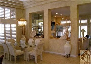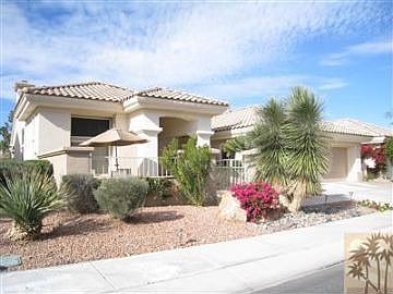 Fabulous estate Marquis with wonderful golf course and mountain views. Many architectural details including high coffered ceilings in dramatic entry and living room with indirect lighting. Large family room. Chef's kitchen with oodles of cupboads and counter space. Granite counters. Large neutral tile in all but bedrooms. Plantation shutters on all windows. Neutral, rich paint throughout. double doors to master suite with sitting area. Sumptuous master bath with granite counters, and shower. One of the largest walk-in closets in the community. Spa tub, separate shower, upgraded plumbing fixtures. The 2nd bedroom has triple mirrored closet and ensuite bath. The laundry room has been converted to an office. In addition there is a den/tv room. The property is entered through gated courtyard. Front and back patios have overlaid flagstone-like cement. Double leaded glass entry doors.Electric awnings across back.6 fans. A must see. and sell. Must make appt. because of an adorable jumping dog