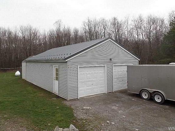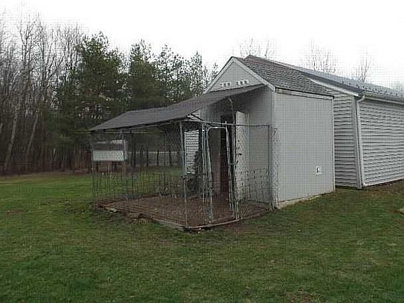 Spacious open floor plan with dining/kitchen combo, loads of cupboards and storage, family room and living room! Large master bdrm/bath. Propane furnace and wood stove for cozy warmth. Detached 2+ car garage w/metal roof (4yrs.old), front and back garage doors. Bonus chicken coop included! House roof 8 years, new hotwater tank. FULL high dry basement! Enclosed porch/mud room area. Gorgeous 19 ac of privacy, approx. 14 ac wooded. Invisible pet fence w/collars. Public water! Truly move in ready, a must see!This home offers the 100% Money Back Guarantee! Some restrictions apply.