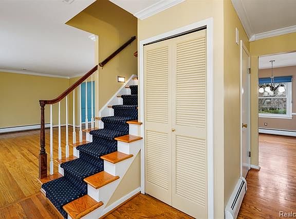 Classic Bloomfield center entrance colonial! Nicely updated and maintained, and with great curb appeal. Oak hardwoods throughout most living areas. Spacious living and dining rooms. Eat in Kitchen features maple cabinets, Corian counters and stainless appliances. Opens to family room with fireplace and sliding door to large paver patio and private yard. First floor office or 5th bedroom with closet. Spacious powder room for guests. Four bedrooms upstairs, all with wood floors. Beautifully renovated master bath. Generous upper hall bath with double sinks. Basement renovated in 2017 with open floor plan and large rec room. Windows replaced throughout. First floor laundry. Central Air, City water and Sprinkler system with separate water meter. BH schools â Conant BHMS BHHS. One year home warranty included. Immediate occupancy!
