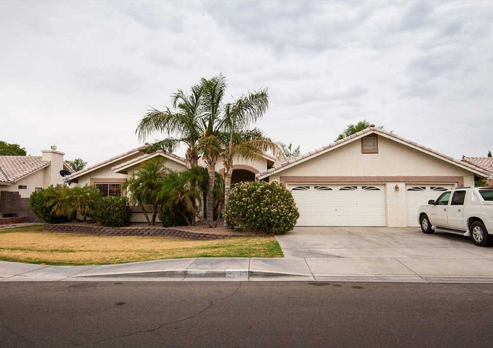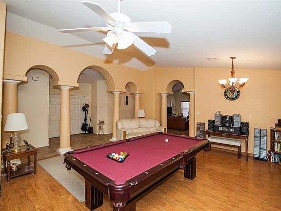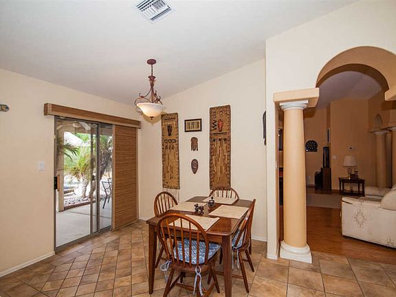 Beautiful 4 bed/2 bath pool home in Falls Ranch! The split floor plan offers lots of options to fit your needs, and features tile and wood floors throughout most of the home. The eat-in kitchen comes with all appliances and includes an island/breakfast bar and pantry storage. Master suites features a bay window, vaulted ceilings and en-suite full bath with dual sinks, garden tub and separate tile shower. Backyard showcases a large swimming pool with lawn and mature palm trees, perfect for entertaining.