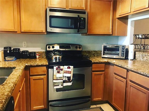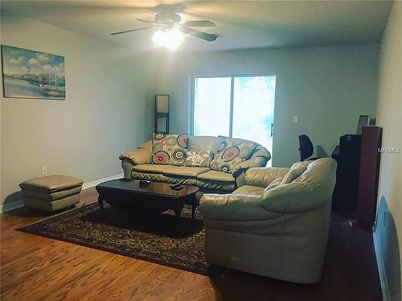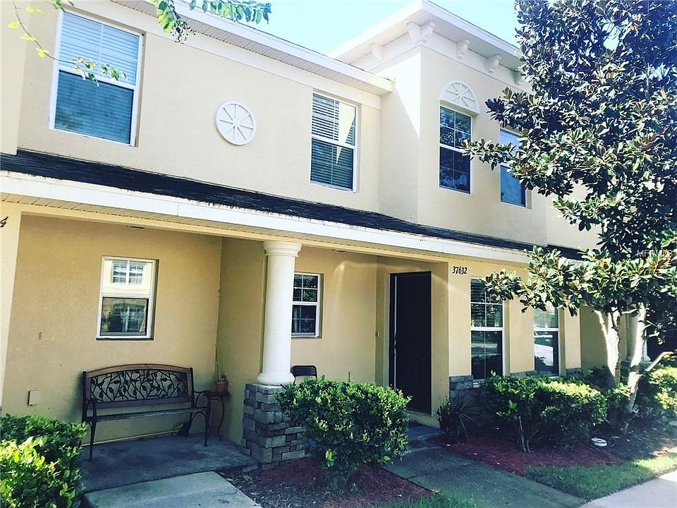 Welcome to this FULLY FURNISHED, spacious two-story townhome in a well maintained gated community! This unit is very clean and has BRAND NEW CARPET and fresh coats of interior paint. Upon entering the front door, there is a lovely entry, a roomy kitchen with GRANITE countertops, STAINLESS STEEL appliances, and a cutout looking into the large defined dining room with a bar. The living room has glass sliders to open to the lanai. Also on the first floor is a powder room with hookups for a full size washer and dryer. The entire first floor is HARDWOOD FLOORS with ceramic tile in the wet areas. Upstairs is a split floor plan with new carpet throughout all three spacious bedrooms. This home offers peace of mind to renters. The location is ideal for an easy commute to Tampa. This complex is near many amenities, such as grocery stores, retail shops, restaurants, and downtown Zephyrhills. Rent includes furnishings but owner can remove unneeded furniture for the tenant.