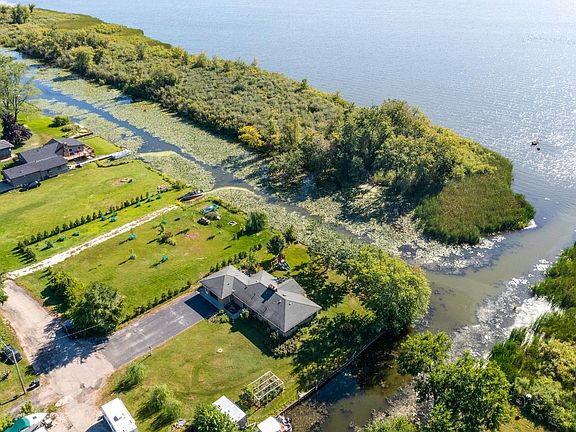 Waterfront! Beautiful location, 3 bedroom, 2 bath all brick ranch on a nearly half acre lot. Recently remodeled. Brand new AC (forced air) system installed in 2023. Stainless steel appliances, quartz countertops and hardwood throughout. Property located on the mouth of a channel to Nippersink Lake with approximately 300 feet of private water line. Several possible mooring sites including a two slip notch with seawall. Wood burning fireplace. Come and see for yourself. 1 car attached garage is deep and houses extra bathroom. Real estate broker owned. Property in flood plain.