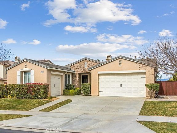 BEAUTIFUL home located in the master planned and highly sought-after gated community of Tournament Hills II. As you enter this gorgeous home you are greeted with a welcoming foyer and open floor plan which boasts separate living, family, and dining room areas and features a stunning 3-sided fireplace! This single-story (3 bedroom + office, 3 bath, 2,411 sq ft, 2 car garage + workshop) home has fresh, new paint throughout so you get the best of both worlds: a gorgeous home in a well-established community that is so well-kept it looks new! Amazing gourmet kitchen features GE appliances including built-in microwave, gas stove top, dishwasher, oven, with a large island, and walk-in pantry. Indoor laundry room features a built-in sink and plenty of cabinetry/storage space. Huge main bedroom with custom black-out window coverings and gorgeous French doors with backyard access also features a large walk-in closet; main bathroom includes dual vanity sinks with separate tub and shower. The backyard is peaceful and private with amazing mountain views, a custom-built patio cover and several fruit trees including: lemon, orange, peach, and avocado! This spacious, upgraded, move-in ready home is only 1 block away to a 2.5 acre catch-and-release lake stocked for residents complete with a playground area and walking trails. Don’t miss out on this opportunity to purchase your dream home in this amazing community!