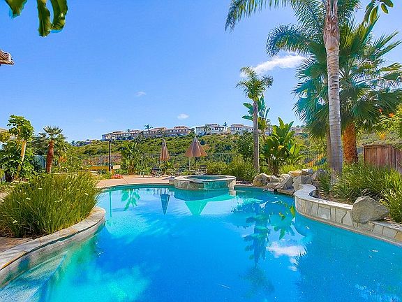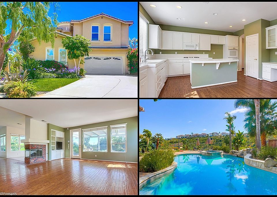 Do not get stuck with two homes, buy this home and I will buy yours!* Call the listing agent directly to learn more about our program. VIEWS! JR MASTER! DOWNSTAIRS BEDROOM! PROTECTED HIKING TRAILS! POOL HOME! GORGEOUS NEIGHBORHOOD! CUL DE SAC! 3 CAR GARAGE! 10 mins to the BEACH! Enjoy fresh ocean breezes right from the comfort of your own home. Absolutely immaculate Carlsbad home located at the end of a cul de sac. The moment you lay eyes on this home you will fall in love with the curb appeal and stone steps that lead to the front gate. This home also comes with a 3 car garage for extra parking spaces. Private entrance leads you into the home where you will be welcomed by tall ceilings and original hardwood flooring. Large tall windows allow natural sunlight to shine in all rooms. Original brick fireplace in the dining room. Walk into the kitchen and notice the recessed lighting plus the double ovens and island with seating. Tons of cabinets in the kitchen and a pantry! Upstairs, the master bedroom features tall windows and a large bathroom with a separate soaking tub. Double sinks plus a built in vanity make this master bath perfect! Outside is an entertainers dream! Attached pergola adds shade to the patio for dinners outdoors. The pool is gated for extra safety and comes with a slide and jacuzzi. Built-in BBQ is ideal for hosting parties or get-togethers in the summer. Custom built stone seating for the fire pit makes it the best spot to relax and unwind at night. You do not want to miss out on this Carlsbad beauty! Seller to entertain offers from $949,999-$1,049,999