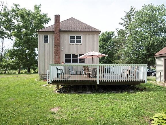 Affordable 3 bd 1.1 bath four square style home in the Skaneateles School District with Town of Sennett taxes. This charming home features a large deck overlooking the the park-like backyard with decorative landscaped pond, 2+ detached garage ( with electric and dog kennel). Lovely bright and sunny maple kitchen with sliding door to deck, first floor laundry, half bath and large living room with original wood floors, front porch, oversized second floor full bath, 3 bedrooms with original wood floors, and staircase to full unfinished attic. The home boasts with new roof, new overhead garage doors, new dishwasher, freshly painted interior and so much more!