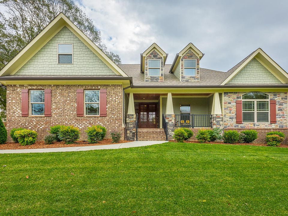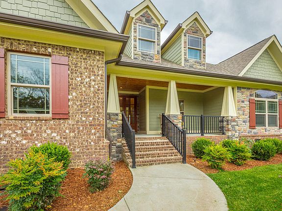 One level living at its best. Don't miss this stylish and well maintained rancher located on Big Ridge in the heart of Hixson. A perfect rocking chair covered front porch with side entry garage and driveway welcomes you upon arrival. Upon entry enjoy double glass inset front doors and sidelights and spacious entry foyer. With wood floors throughout the main living areas and crown molding throughout this home offers charm and appeal. This open floor plan allows for easy living and entertaining whether you are gathering in the open living room in front of the fireplace watching your favorite TV show or bellying up at the bar height kitchen island catching up with friends and family. The kitchen offers an abundance of counter and cabinet space with large breakfast/dining area. The glass doors and windows off living room open to screened in porch overlooking the level backyard. There are two good sized guest bedrooms with shared hallway bathroom off the kitchen. And the master suite is off the living room with private bathroom offering separate tiled shower and tub with his and her vanities and walk in closet. There is a finished bonus room to boot, a great space for spill over living or 4th bedroom if needed. This is a lovely home conveniently located on the ridge just minutes away from Big Ridge Elementary, Greenway Farms trails and dog park and the Publix shopping center.