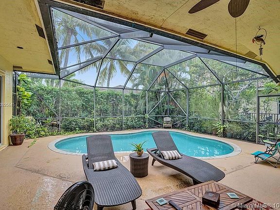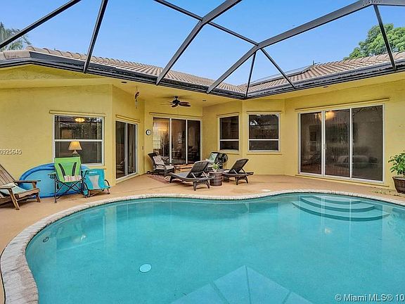 Triple Split 5 Bedroom 3 Full Bathroom Home In The Prestigious Community Of The Ridges with a guard gated entrance, walking distance to top schools this home features tiled floors throughout, wide open floor plan! 5th bedroom is being used as an office! Relax on the screened covered patio perfect for outside entertaining! **NEW IN 2020 - water heater, refrigerator in garage, microwave, ice maker, washing machine, pool pump, dishwasher** Association requires all pick up trucks to be in garage at night!