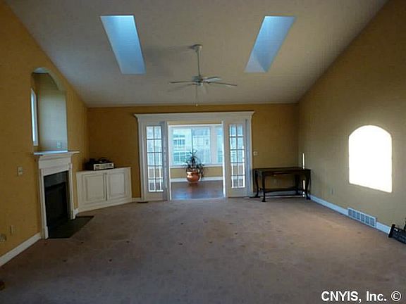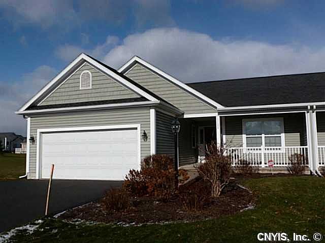 Originally a model home with all the upgrades. A heated Florida room with French entry doors and a balcony- deck overlooking a pond. A great room with cathedral ceilings, skylights, a gas fireplace and crown molding. The kitchen has upgraded cabinets, granite counters, tile back splash, granite breakfast bar and crown molding. Master bedroom has a lighted trey ceiling and built in cabinetry. Master bath has granite counters, bath and walk in shower. Walkout basement leads to a covered brick patio. Basement is plumbed for another bathroom.