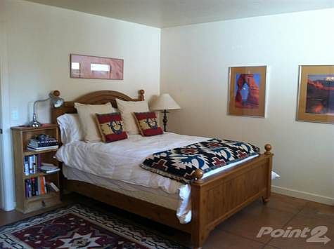Only corner unit currently available in Rim Village Vistas. This unit has not been in the nightly rental pool but comes fully furnished. Second fireplace in master bedroom. Garage has custom shelving, work bench and suspension system for bicycles. Brokered And Advertised By: MOAB REALTY Listing Agent: Danette Johnson