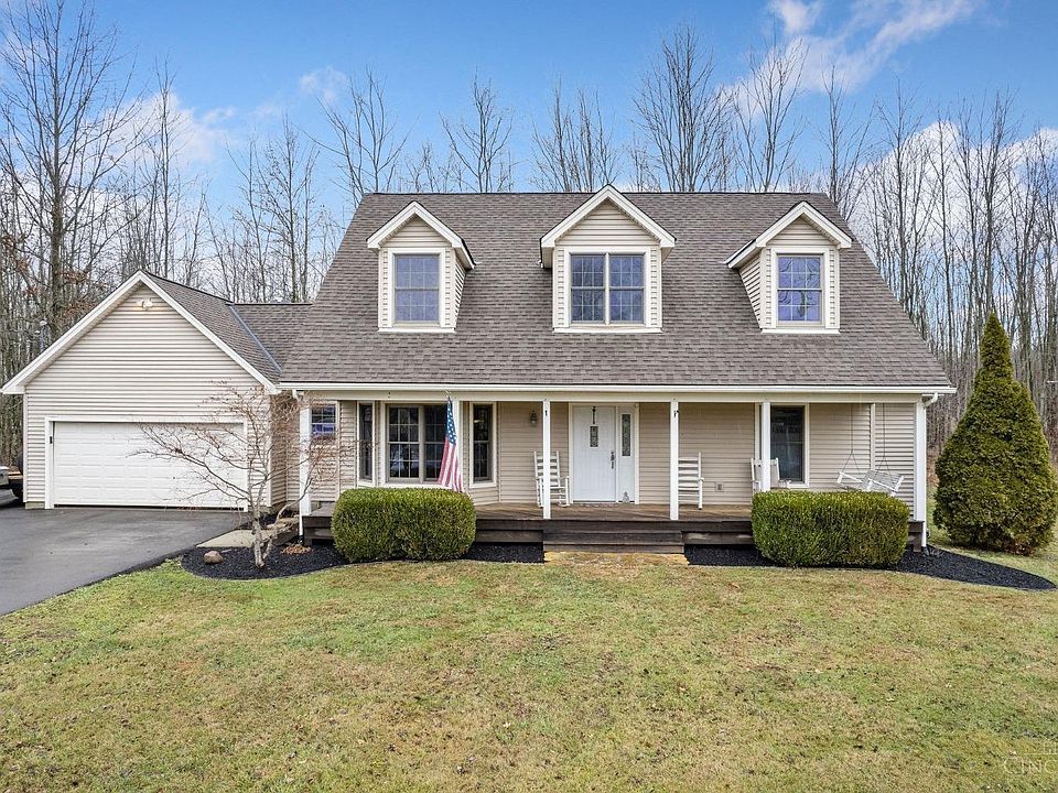 Peacefully nestled custom built cape cod on 2+/- acres 3 bed 2.5 bath home. Bedrooms and baths are freshly painted. First floor primary & laundry, breakfast nook plus a formal dining room. Cherry kitchen cabinetswith granite countertops. New Hvac, widened and extended blacktop driveway.
