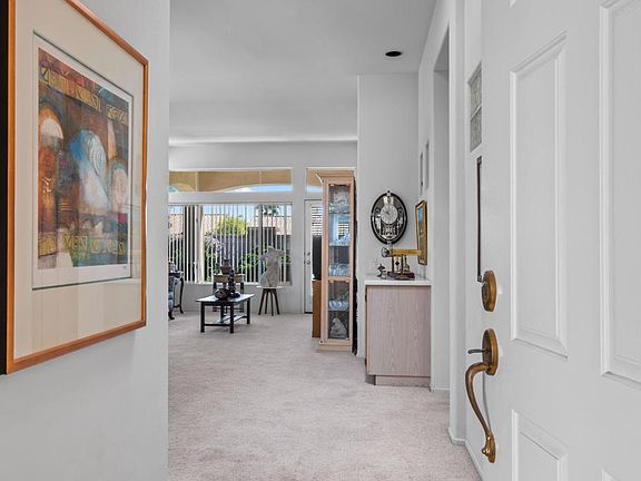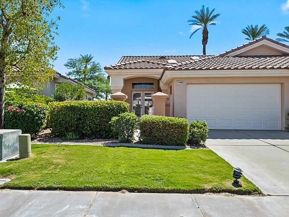 OPEN HOUSE:SAT 9/23 from 11:00am - 1:00pmSUN 9/24 from 11:00am - 1:00pmLovely and rare 1 bedroom/ 1 bath in ''The Villas'' section of Sun City Palm Desert, across from the Mountainview Clubhouse. Enter the gated front courtyard to open concept, main living area, great room with skylights, a built in buffet, and door to east-facing back patio. The kitchen is in the front of the home with French doors opening to the courtyard, and a newer microwave. The bedroom has peek-a-boo mountain views, estate shutters, a window bench, sliders to back patio, and 2 closets. T bathroom features 2 entrances, one from great room and one from bedroom with a guest pedestal sink, step-in shower and vanity area, and 2 skylights. Covered back patio. In-unit laundry room. HOA maintains landscaping outside front courtyard and back patio. One car garage plus golf cart nook! Sun City Palm Desert is nationally recognized as one of the best adult communities in the country, golf courses, pools, tennis, pickle ball, restaurants, many, many social and activity clubs.