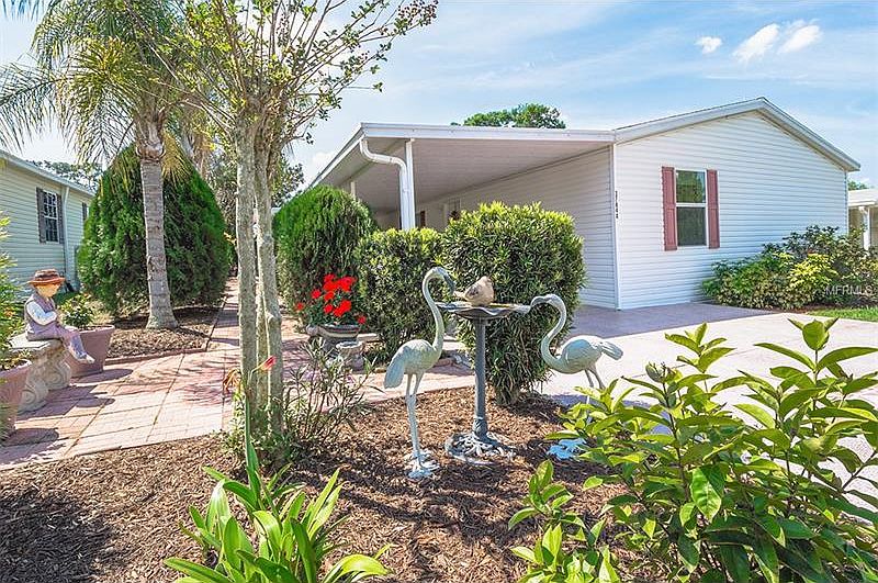 GATED GRAND HORIZONS! Own your land in this active 55+ Community in Sunny Florida with resident owned clubhouse and amenities. Well maintained, Custom ordered, one owner home with no pets and no smoking is ready for you! PALM HARBOR 3 bedroom home loaded with upgrades: Double pane windows, Extra parking pad, epoxy driveway, Open patio in front and back covered patio sitting areas, Florida room with vinyl windows and epoxy concrete floor, High Efficiency 3.5 Ton 13 seer AC in 2010, New ROOF in 2013, Dishwasher replaced in 2017, new kitchen faucet/sprayer. Ceramic Tile floors in Foyer, Kitchen and Baths. Features Wood Burning Custom Fireplace in Greatroom! Split plan for privacy with guest bedrooms and bath at front and Master suite at rear of home. Kitchen features breakfast bar, eat in dinette, deep pantry and has sliding doors open to Florida room. Utility shed is spacious, Loads of closet and storage space in this home. CALL today to see why this IS the place to BE!