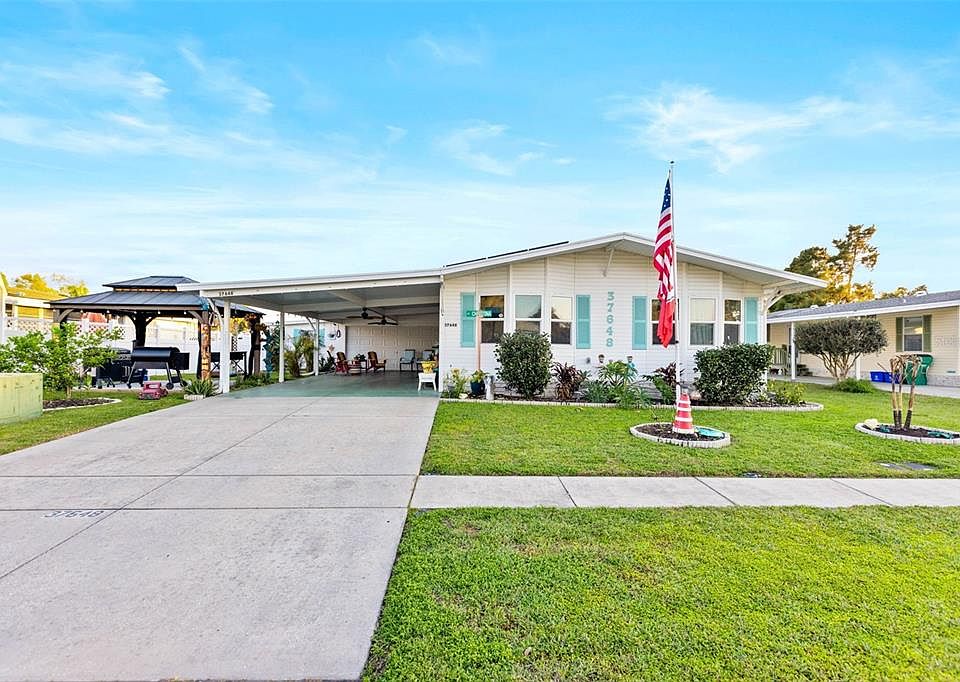 COME ONE COME ALL TO THIS ZEPHYR RIDGE 3 BEDROOM 2 BATH 2 CAR GARAGE HOME. NO HOA OR AGE RESTRICTIONS HERE! THE SELLERS OF THIS HOME HAVE SPARED NO EXPENSE UPDATING AND UPGRADING SINCE PURCHASING. Enjoy extremely low electric bills thanks to the solar panels that were installed last year and have a 25 year transferable warranty. New roof was put on main home in 2021 to include 24 inch roof extensions keeping everything around home dry. Roofover placed over metal parts of roof six months ago! All windows have been replaced with double pane windows in 2021. All flooring throughout home has been replaced in 2021 with luxury vinyl, no carpet anywhere! Gorgeous updated kitchen with tons of storage, breakfast bar, new backsplash, separate dinette, island, and all appliances are included! Both baths have been remodeled, master has double vanity, tub and separate shower. Entire interior of home has been painted. All of the fixtures have been replaced and updated throughout entire home. Fireplace in family room with formal dining room in between family room and kitchen. Split plan bedrooms with master ensuite to one end of home and two guest bedrooms and bath all the way on the other side. Outside, the upgrades and updates continue with a large two car air conditioned attached garage, large Florida room in the back, a 10x12 storage shed attached to garage, with electrical, beautiful gazebo, another 10x8 garden shed, Hurricane strapping redone in 2021, irrigation just a year old, vinyl fencing, screened in walkway in the back. So so much has been taken care of! This home is the epitome of move in ready! You have to see to believe the amount of work that has been put into this amazing home. All of this and just a mile off of US Highway 301 making for easy commutes to Tampa, Brandon, Lakeland, Orlando and the Gulf Coast Beaches! Call for your personal viewing of this amazing home.