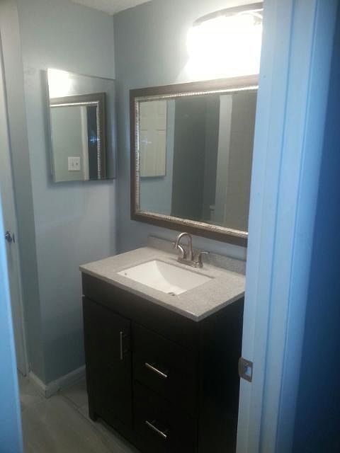 Laminate flooring, clean, quiet, plenty of parking. Across from Crown Point Elementary School, walking distances to restaurants, stores, day care. Only 9 miles to NAS Jacksonville, against traffic. Dishwasher, stove and refrigerator included. All new stainless steel appliances. Washer and dryer available upon request! Master Bedroom :16 by 12 feet Closet: 8X6 Second bedroom : 12x13 Living room/dining room 28x16 Both bathrooms renovated. Plenty of storage space.Laminate flooring in all areas except kitchen and bathrooms Nice and private patio . Deposit:$950.00