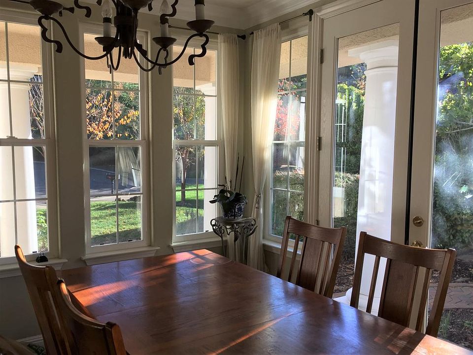 Fully furnished Fountaingrove house with privacy and views. 3 bedrooms upstairs and one office room downstairs. Charming backyard with small vineyard on the side. Hardwood floors in living area and carpeting in bedrooms. Living room with high ceiling and cozy family room; both with fireplaces. It is a move-in ready house with all linens, dishes, tools, music instrument included. Pets negotiable. Contact Jenny at show contact info for more information and to schedule showing appointments.