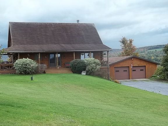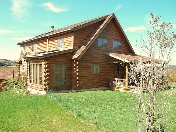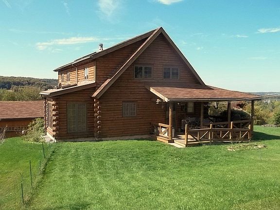 If you have dreamed of country living on 20+ acres overlooking a lovely lake in a TRUE LOG HOME, Welcome Home!! GLOWING is the best word to describe this beautiful, full log, cathedral ceiling interior. And the VIEW? To die for in all directions! Winter will be easy, warm, cozy & fun w/ stone wood-burning FP, whole house generator, 48" Kuboto snowblowe & cultivated snowmobile trails. Summer will be playful, cool & relaxing w/ Hot Tub, Central A/C & Lake & Valley views from 3 porches. Situated between 2 lakes, home features lower level guest/in-law suite & lg FR. 2nd floor offers closed BR, true loft BR & open office/sitting room. Huge 4+ car garage connected by enclosed breezeway is its own furnace, electrical & water w/ adjoining animal pen. Come home to a dream vacation home every day!