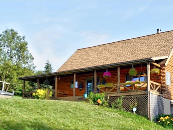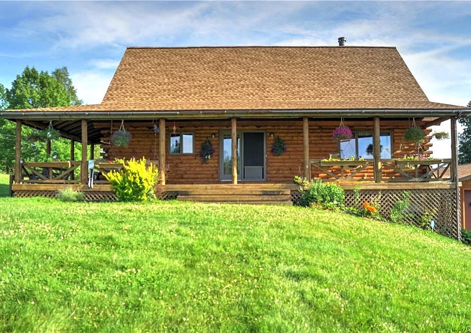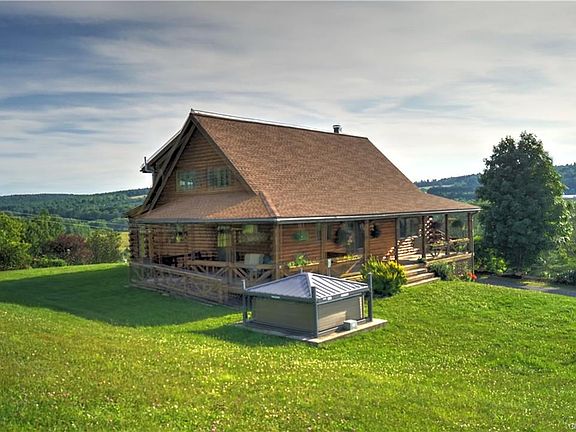 If you have dreamed of country living on 20+ acres overlooking a lovely lake in a TRUE LOG HOME, Welcome Home!! GLOWING is the best word to describe this beautiful, full log, cathedral ceiling interior. And the VIEW? To die for in all directions! Winter will be easy, warm, cozy & fun w/ stone wood-burning FP, whole house generator, 48" Kuboto snowblowe & cultivated snowmobile trails. Summer will be playful, cool & relaxing w/ Hot Tub, Central A/C & Lake & Valley views from 3 porches. Situated between 2 lakes, home features lower level guest/in-law suite & lg FR. 2nd floor offers closed BR, true loft BR & open office/sitting room. Huge 4+ car garage connected by enclosed breezeway is its own furnace, electrical & water w/ adjoining animal pen. Come home to a dream vacation home every day!