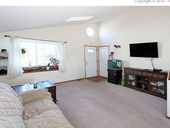 Gorgeous private backyard view of Pikes Peak! D-20 tri-level home at the end of a cul de sac backs to Cottonwood Creek has NEW stove, NEW vinyl windows and slider, NEW light fixtures, NEW backsplash & cabinet pulls in kitchen, newer entry & garage door, newer patio door, newer storm door, newer fence & roof & more! Downstairs bathroom is remodeled, energy efficient furnace & water heater both only 4 years old, wood floors in kitchen & under carpet in living room. Cottonwood Creek park, pool, rec center so close!
