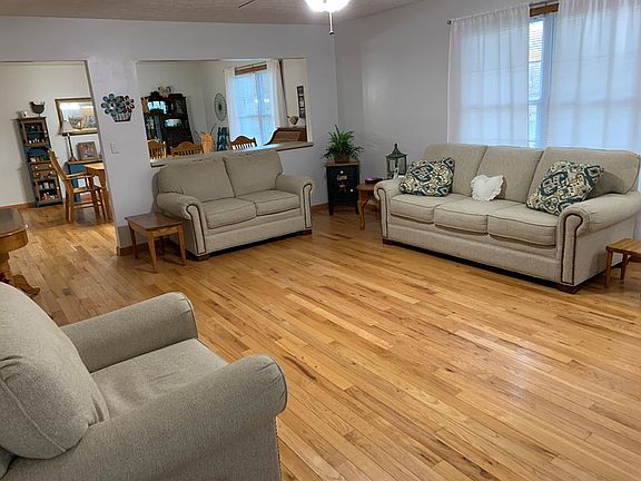 This beautiful farm offers a one floor plan home and a one floor plan mother-in-law suite. The main home offers 3 bedrooms, 2 baths, kitchen that's open to the dining room, living room, large pantry, laundry room, and unfinished basement for storage. The mother-in-law suite offers a one to two bedrooms, bath, eat-in kitchen, living room, and two car attached garage. Large buildings, barn, and detach garage. Covered decks. Homes have public water; however, well water is also on the property. Wood burning stove in large garage. The property is fenced and gated for farm animals, ready for crops and/or hay. It should be noted that not all of the property is in a flood plain.