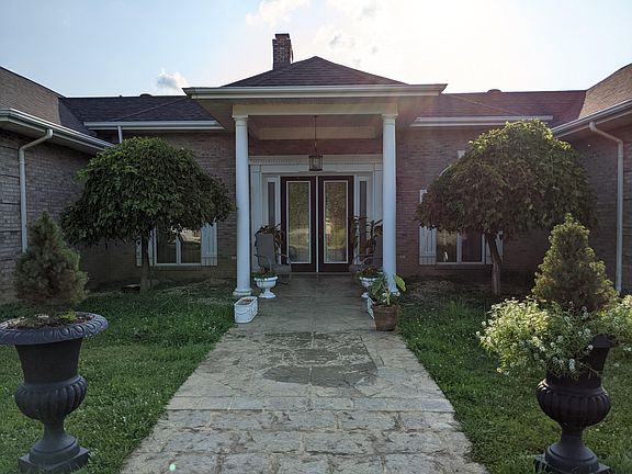 Custom brick home on a secluded 5 acres! Offers 4 bedrooms and 4 bathrooms. Main Level master with 2 large walk-in closets, luxurious bath, and walkout patio. Grand entertaining area below with custom bar setup, lounge, and fireplace. Additional acreage can be purchased. More pictures coming soon as updates are completed.