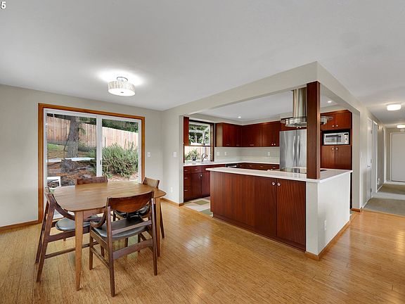 Perched just high enough to capture stunning views of Spencer Butte and the Willamette Valley—yet still close enough for an easy walk to Provisions or a bike ride to the University of Oregon or downtown—this South Eugene home blends location, style, and thoughtful upgrades. The fully updated kitchen pairs modern conveniences like stainless steel appliances and quartz countertops with mid-century design details that honor the home's 1968 origins, including custom wood cabinetry handcrafted by a local cabinetmaker and vinyl composite tile flooring. Several green features enhance efficiency, including a new heat-reflective composite roof installed in April 2025 and ductless heat pumps that provide both heating and cooling. The living area features renewable bamboo flooring, adding warmth and sustainability to the home’s interior. The home also benefits from a complete earthquake retrofit. Inside, you'll find four bedrooms and three bathrooms: three bedrooms and two baths are located upstairs, including one ensuite, while the lower level offers a fourth bedroom, a bonus room, and a third bathroom—ideal for creating distinct living zones. The expansive 0.21-acre lot includes a generous flat play area with lawn, a spacious composite deck, mature landscaping, raised garden beds, and fruit trees. A brand-new fence adds both privacy and charm. Outdoor lovers will appreciate being just steps from the South Amazon running trails and a short walk to both Tugman and Milton Parks. This home offers the perfect balance of tranquility, convenience, and modern comfort. Open House Friday, May 23 from 11-1pm