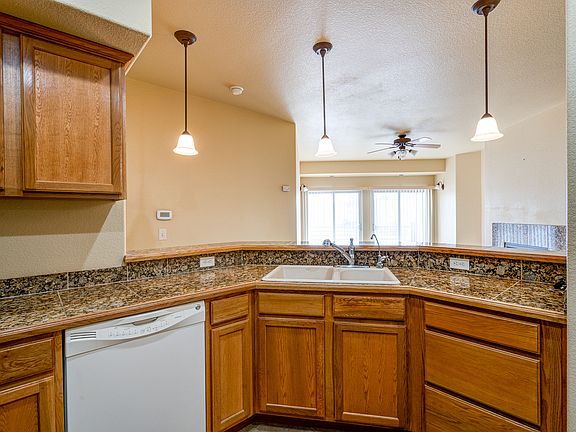 Lovely condominium with desirable district 20 schools! Gorgeous layout offering an incredible open floorplan complete with central air, tile floors in the kitchen and entry, gas fireplace in the living room and two full tile baths. The kitchen offers a dishwasher, ceramic top stove and a counter bar. The living area is open to the dining area and walks out to a covered balcony. Additional amenities include an oversize 2 car garage, additional storage off the balcony and washer/dryer hook-up. Near schools, parks and shopping. Trash is included