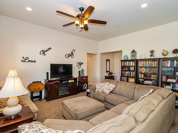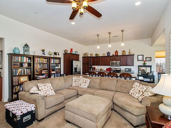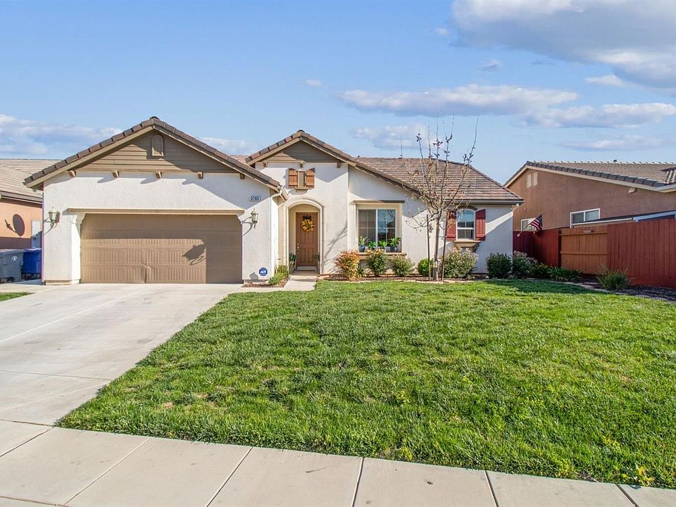 Better than new! Less than 6 years old Bonadelle built 3 bed 2 bath Blossom model in The Grove neighborhood. Upgraded from builder standard this home includes granite counters with dark cabinets, pendant lights, double sinks in bathrooms, french doors into the master suite, exterior garage man door, all in an open floor plan with lots of light and ceiling fans for comfort. Spacious back yard with covered patio as well as second patio and no 2 story homes looking into the yard. Relax an unwind in this home or venture out (safely) to nearby amenities for food, shopping, schools, and services. Refrigerator and washer dryer included along with front porch benches and planters.