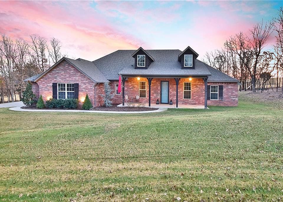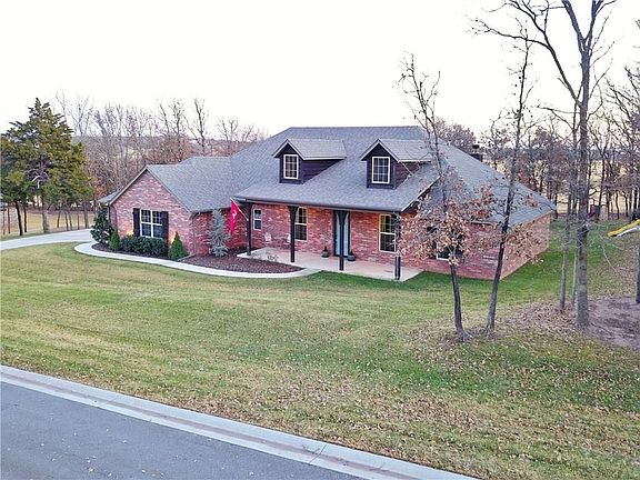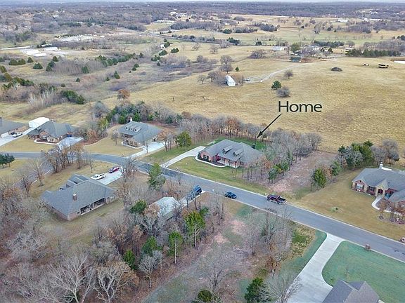 This beautiful home sits on almost an acre, with the covered patio overlooking a wide open view, and a covered front porch to enjoy coffee in the mornings. The large open floor plan has an abundance of natural light. The large gourmet kitchen comes w/ an island, granite counters, custom cabinetry, breakfast bar, and pantry. The en suite master bath has a large corner tub to soak away the day's cares; it also has a separate shower, his/her vanities, and a large walk in closet. Custom reclaimed wood planning center in laundry room and custom shiplap in entryway & master bedroom! 3 car garage with a large driveway for oversized vehicles or a boat, and Woodland Farms is shop approved! Storm shelter!