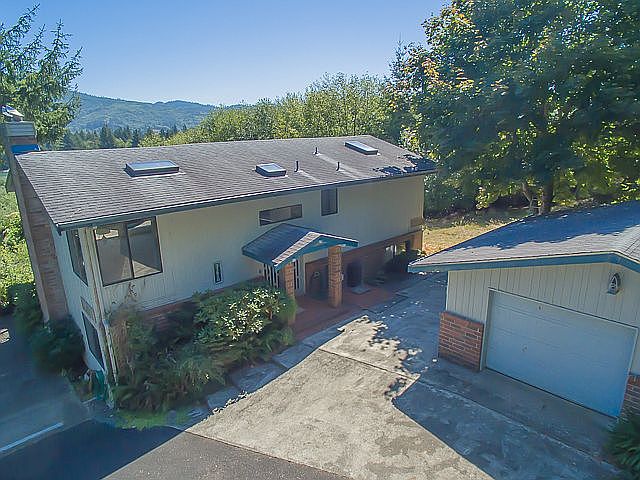 You can have it all - over an acre on a quiet dead end street, view of the Nehalem River, rural setting but with City water and sewer. Huge newer deck & patio with fire pit. 2 full kitchens, ideal for multigenerational living. Newer main kitchen. Primary bedroom has access to deck. Detached garage with storage space. Hot tub remains.
