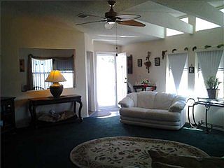GRAND HORIZONS CORNER LOT! Just inside the gate, notice the premium lot, with Former Palm Harbor Model home for sale!Completely redone inside with new paint, new flooring and over $40,000 in upgrades! Completely redone and ready to move in. Ramp or steps lead you to the front door, with storm door entry. Thermal paned windows with built in shields, Glass Skylights, 6 panel colonial doors, Tiled Foyer welcomes you to an OPEN Greatroom plan. Lots of light with transom windows in this spacious living area, OPEN to the Formal Dining room with built in Hutch. Wrap around kitchen with loads of cabinets and counter space featuring a light, bright bay window dinette area and new flooring. Enormous Master at the rear of the home with a spacious walk in closet, room darkening shades and OPEN dressing area, dual sinks and spacious shower. Guest bath is just across hall from Guest bedroom for easy access. Inside utility room leads to oversized screened lanai, carport and attached utility shed. NEW ROOF in 2011, NEW 4-ton A/C Heat Pump in 2010, NEW concrete driveway in 2013 and radio/intercom system throughout. ENJOY the new Clubhouse, POOL and activities in this GATED community within a mile of hospital, doctors, restaurants, shopping and amenities. COME AND SEE why this is such a GREAT PLACE TO BE!