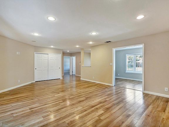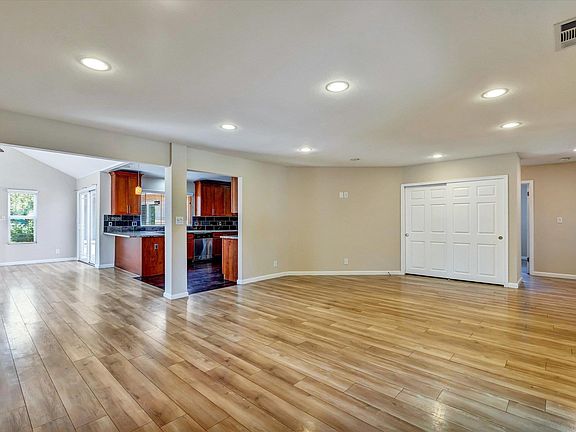 5 Bedroom, 3 Bath + Office – 2,420 Sq Ft | Modern single-story home with vaulted ceilings, huge dining area, updated kitchen with granite counters, stainless steel appliances, and stone backsplash | Laminate flooring throughout | Laundry room | Pass-through garage with rear roll-up door | Large private backyard with hardscape seating, lawn, and fruit trees (plum apricot, peach, grapefruit, mandarin orange) | Convenient location near highways and BART