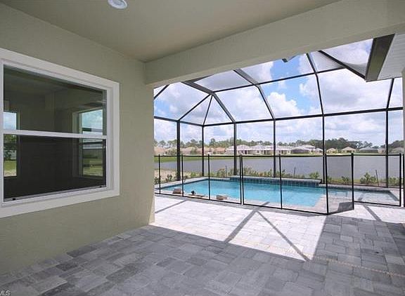Beautiful Starlight Floor plan with long lake view. Tile through the living area and wood floor in the den. This home has quartz countertops with upgraded cabinets and stainless appliances. The pool, overlooking the lake has both a water spill and a sun deck. This is a smart home with many conveniences at your fingertips and cell phone.