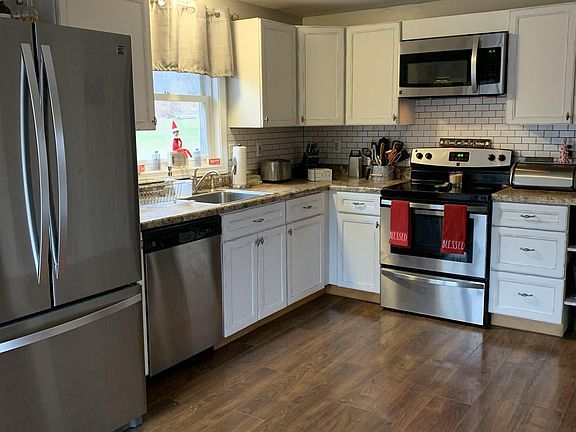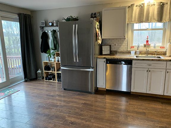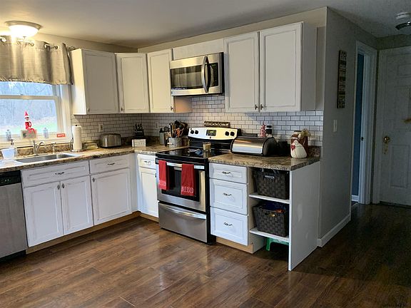 3 Bedrooms, 2 full baths, gorgeous views and sunsets. Nice open flowing floor plan, master bedroom suit could be eat-in kitchen. Full bath up with 2 bedrooms. First floor bedroom with full bath. New roof, new furnace, newer hot water heater, fresh paint, new subway tile kitchen, and baths. Nice dry basement with woodstove for supplemental heat. Used 1 tank of oil per season with wood stove use. Basement access from outside. New driveway material. Easy access to main road to VT. There are some small tweaks, but very nice with LOTS of potential to make it your very own.
