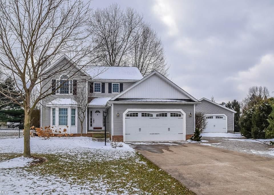 Stunning 3 bedroom, 2.5 bath colonial in Jackson Township! 2-car attached garage PLUS a 25x19 1-car detached garage. Keep warm by either of the 2 beautiful fireplaces: one in the spacious living room with a bay window and the other in the heart of the great room with soaring ceilings! Fantastic layout for entertaining with an open dining room, great room, and kitchen. Lots of counterspace to cook in this fully applianced kitchen with a pantry, tile backsplash and a breakfast bar. Convenient, updated half bath right around the corner. Huge first floor laundry room and mudroom with a bench, hooks, and shelving - the perfect drop spot! Upstairs, the master suite boasts vaulted ceilings, a 7x7 walk-in closet and a private full bath with a corner soaking tub, walk-in shower and a double sink vanity. There are 2 additional bedrooms and a full bath. Bedroom 2 has a walk-in closet with a window and is filled with sunlight. The lower level offers a finished rec room as well as a utility room for storage. Super private, fenced backyard with ample room to run and play. Quiet neighborhood at the end of a cul de sac! Move-in ready - donât miss out!