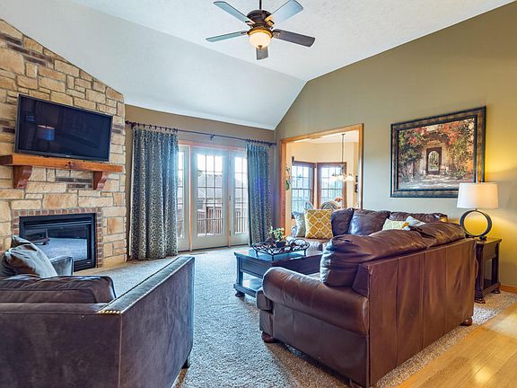 A rare and wonderful find, in a convenient SE location, with a quiet setting adjacent to a wooded lot... you get it all with this gorgeous walkout basement home in James Towne Square! Every detail is welcoming... from the stone fireplace in the living room, the hardwood floors, the granite counter tops and stainless steel appliances. The home features a master suite with full bath, an office, and a second bedroom on the main level. Additionally, a formal dining room, eat-in breakfast bar in the kitchen and a cozy living room. The lower level features a media/playroom with built-in shelving, two bedrooms and a full bath. Of course, a wet bar and a John Deere room complete the lower level amenities. Come visit today, stay a lifetime.