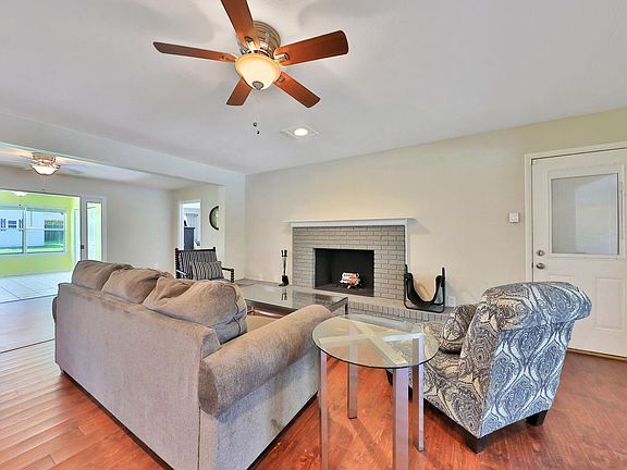 Situated on a quiet street of large estate homes, this UPDATED ranch is sprawling with great space! The yard is HUGE with detached shed/man cave; plenty of room for outbuildings or a pool. Inside you'll find nice updates like 5'' hand scraped wood floors in most rooms, large living spaces with flex uses, newer kitchen w/cherry cabinets, tumbled travertine backsplash, pendant lights over island, SS appliances including refrigerator and more. Painted brick fireplace with hearth; it's all opened up into a big space! Both baths are nicely updated. Inside laundry in FL Rm. Large bonus or 4th br could be great game room or in-law suite. HUGE extended screened patio for great outdoor living. Side entry garage + circular driveway for loads of parking; bring your toys...NO RESTRICTIONS HERE