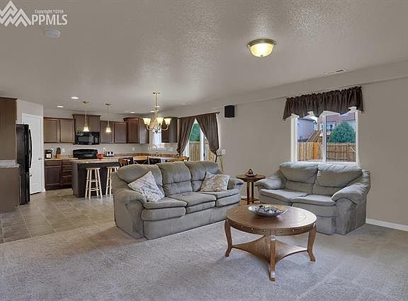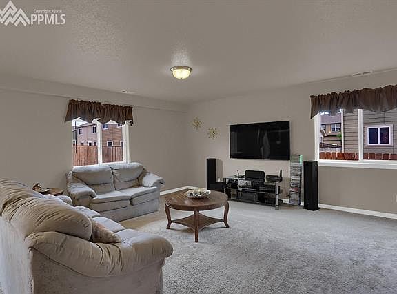 Very well kept home in Mule Deer Crossing! Upon walking in, you are greeted by a warm & welcoming atmosphere boasting a spacious open floor plan. The kitchen is complete with all appliances, island, & opens to the living area. Spacious master bedroom with adjoining private bathroom & sitting area! Within walking distance to Sand Creek HS. All bedrooms & laundry are located on the upper level. Easy access to Powers Corridor, Schriever & Peterson AFBs.
