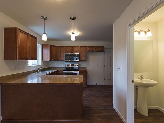 This home offers just under 1,200 sqft of living, over sized 1 car garage and many upgrades. SS appliances, in-floor heating, laminate flooring, pendent lighting, washer/dryer, On-Demand water, 5* Energy rating and much more. Home is just under 5 mins from Wasilla.