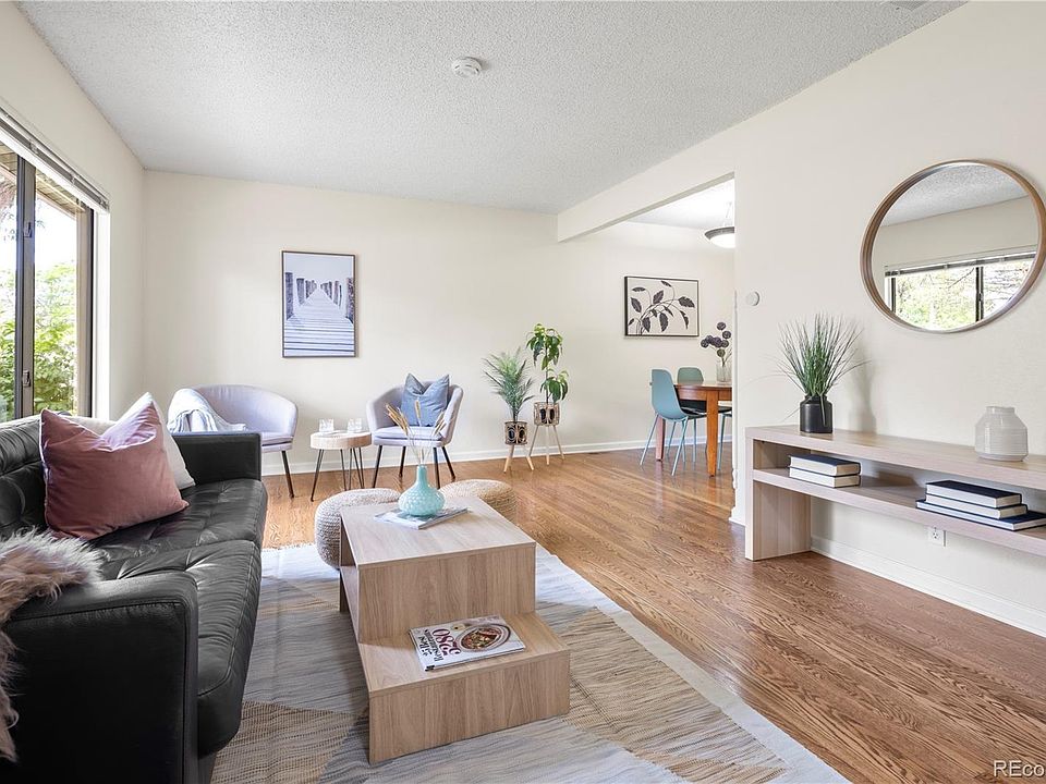 Welcome to your sunny home, located in a tree-lined established community, offering unparalleled access to parks/open space and the prestigious Cherry Creek School District. This spacious townhome with central AC is perfectly situated near Mission Viejo Park and La Parquita Park, where you can enjoy expansive sports fields, playgrounds, and tennis/pickleball courts, all just a short stroll away. Imagine hosting unforgettable summer BBQs on your generous deck/fenced patio, complete with private access to your oversized detached 2-car garage. This townhome boasts one of the largest decks in the community with a wonderful shade tree. Inside, you’ll find fresh paint, beautiful refinished hardwood floors, and a brand-new side-by-side washer & dryer with convenient attached laundry room shelving. Cozy up in the lovely family room featuring a welcoming gas fireplace, perfect for family gatherings. Enjoy close proximity to top-rated schools, shopping, dining, Nine Mile RTD rail station, Cherry Creek Reservoir and the scenic greens of a nearby golf course. Plus, Buckley Air Force Base is just a few minutes away, adding to the convenience & military rental opportunity of this prime location. Don't miss out on the chance to live in the coveted Cherry Creek 5 School District and embrace your new home today.