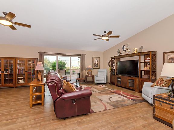 It's not only remodeled to perfection, the captivating panoramic views will bring your spirit to serenity. Cherish everyday with an exquisite display of vibrant colors from sunrise to sunset. You'll love making memories in this home! A few of its wonderful features include a modern kitchen with corian countertops, stainless steel appliances and a double oven. The entry to the den is nicely finished with an updated barn door. Tile wood flooring throughout, tiled bathroom showers with updated vanities, C-tops & mirrors. New updated lighting & new C-fans throughout. A new pergola adorns the front yard & tiled patio. The oversized 2 car garage also has extra storage. A BBQ gas stub will make cookouts w/your guests a delight. Appealing SW color palette inside & Mountain views outside.