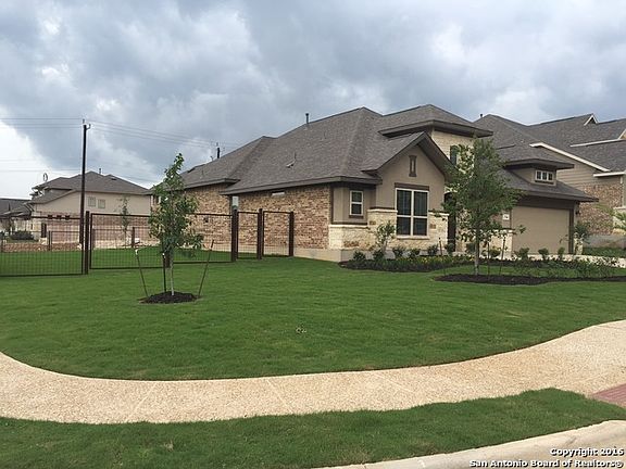 Johnson Ranch- New Gated Community off 281 North- 3 bed 2 bath single story 2200 sq ft, great plan on an oversized corner homesite. 11 ceilings, 8' doors, granite, 18X18 tile everywhere except for bedrooms. Full sprinkler front/back, blinds installed. New Camden Collection- looks very custom. Ready to go now!